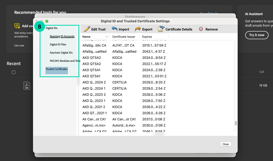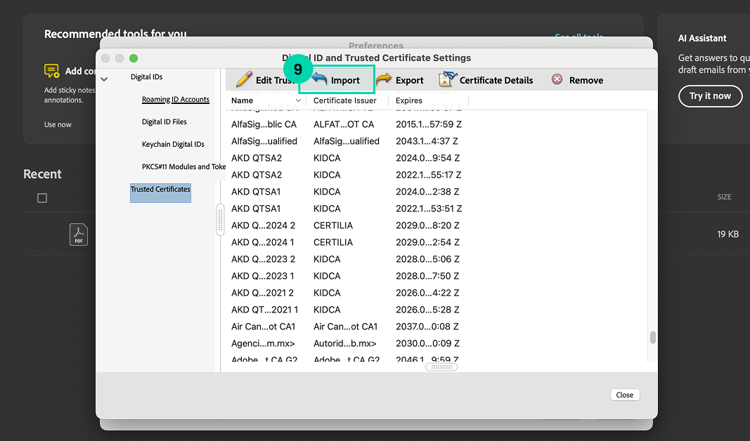 This should automatically load the certificates into your Adobe Acrobat reader.